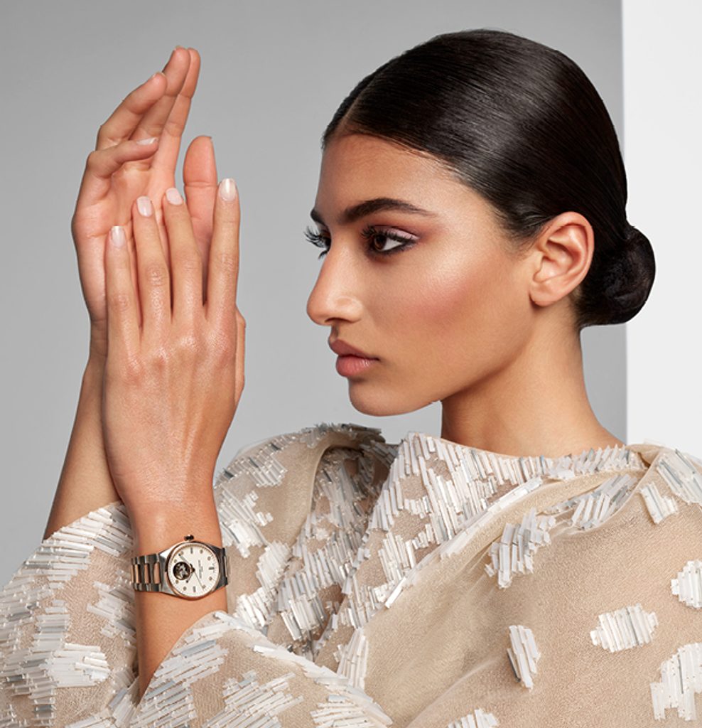 Elegantný a zároveň prehľadný ciferník s jemným motívom zemegule chráni zafírové sklíčko, ktoré je maximálne odolné proti poškriabaniu. Antireflexná vrstva zaručuje vynikajúcu čitateľnosť aj na prudkom slnečnom svetle. Eleganciu hodiniek umocňuje 8 diamantov (0,04 ct) umiestnených na pozíciách indexov na ciferníku. Vodotesnosť tohto modelu je 50 m (5 ATM), takže zvládne základný kontakt s vodou, napríklad dážď alebo sprchu.