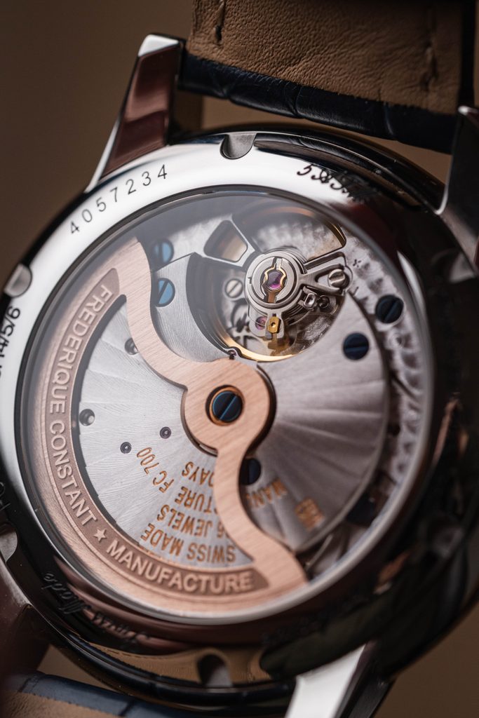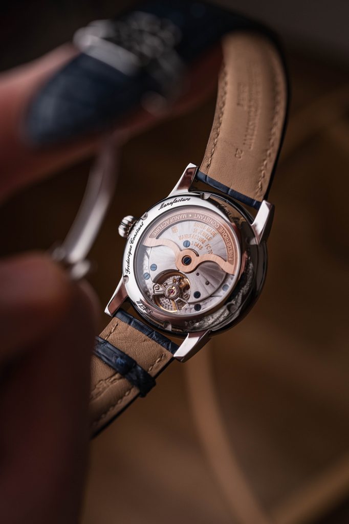 Že to táto ženevská značka myslí s hodinárinou skutočne vážne ukazuje v roku 2004, kedy je predstavený jej prvý manufaktúrny strojček FC-910. Ten bol umiestnený do modelu s priehľadom na zotrvačku, čo značka nazýva „Heart Beat“, pričom toto riešenie Frederique Constant s obľubou používal už v počiatkoch svojej existencie. Nezostalo však zďaleka pri tejto "prvej lastovičke", pretože značka potom pridávala svoje vlastné strojčeky s ďalšími komplikáciami, ako dátum, prípadne s funkciou worldtimer, alebo ukazovateľom mesačnej fázy. Vrcholom sú potom in-house manufaktúrne strojčeky aj s kráľovskými komplikáciami, ako tourbillon, alebo večný kalendár, ktoré dávajú jasne najavo, že sa značka posúva do okruhu vysokej hodinárčiny. Dnes už má ženevská manufaktúra 30 vlastných in-house strojčekov, pričom za zmienku stojí zatiaľ posledná akvizícia - prevratný strojček FC-810 s monolitickým kremíkovým oscilátorom, nahrádzajúcim 26 komponentov štandardného krokového ústrojenstva. Ten pracuje na frekvencii 40 Hz, čo je desaťnásobok frekvencie zotrvačky v bežných mechanických hodinkách. Treba dodať, že Frederique Constant ponúka tieto vrcholné hodinárske komplikácie za veľmi priaznivé ceny.