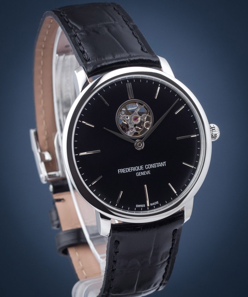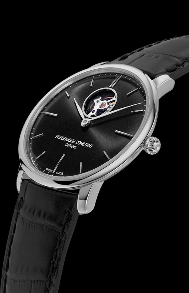 Pánske hodinky Frederique Constant Slimline Heart Beat Automatic FC-312B4S6 patria do série Slimline a vďaka svojmu elegantnému vzhľadu sú vhodné najmä do spoločnosti. Hodinky sú však ideálne aj na každodenné nosenie. Séria Slimline je mimoriadne pohodlná vďaka veľmi nízkej výške puzdier. Dizajn Heart Beat poskytuje priehľadný ciferník na zotrvačníku. Tento dizajn je pre značku Frederique Constant typický už od jej začiatkov.