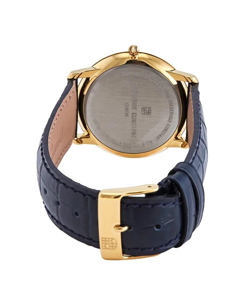 Puzdro hodiniek Frederique Constant FC-245N4S5 je vyrobené z ušľachtilej ocele so zlatou PVD úpravou a je doplnené koženým remienkom. Vo vnútri puzdra spoľahlivo pracuje švajčiarsky batériový strojček FC-245 (na báze Ronda 1019) s desiatimi drahokamami. Je vybavený mimostredovou sekundovou ručičkou na pozícii šiestich hodín a praktickým ukazovateľom dátumu na tradičnej pozícii troch hodín.
