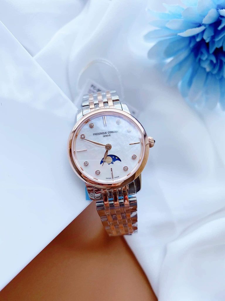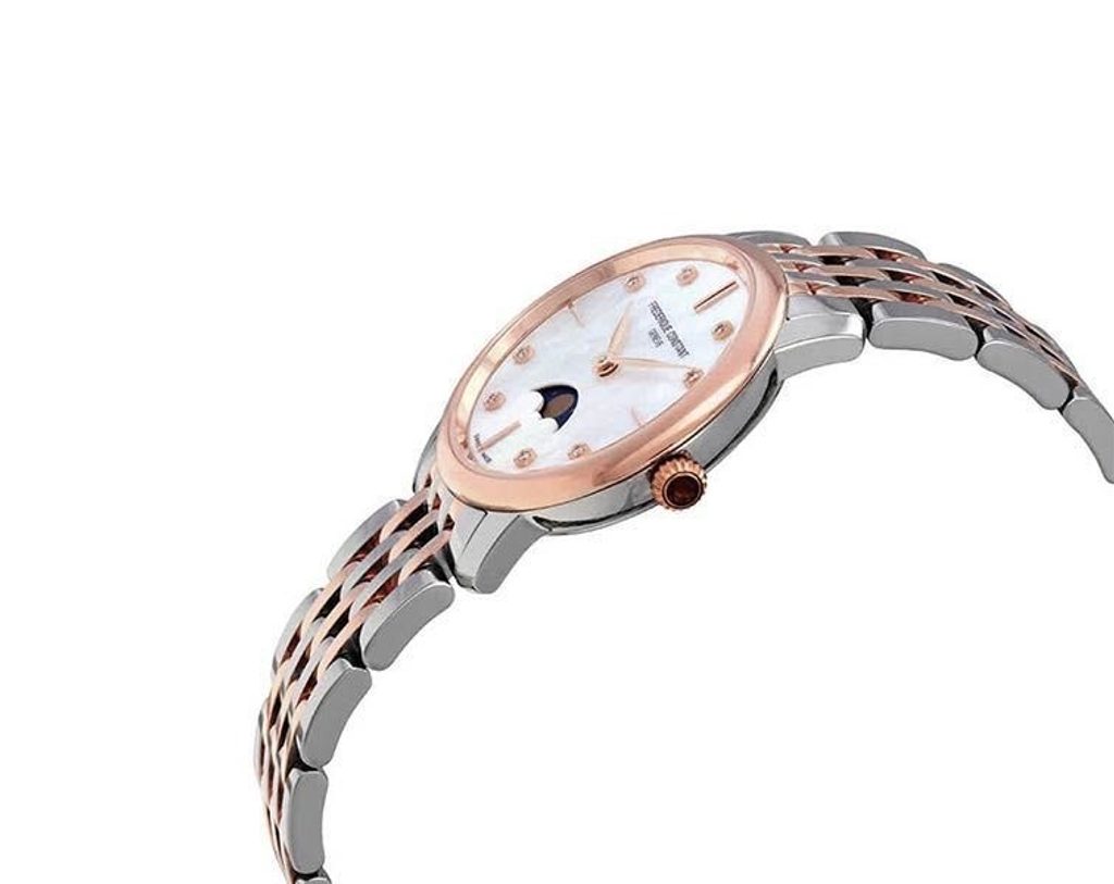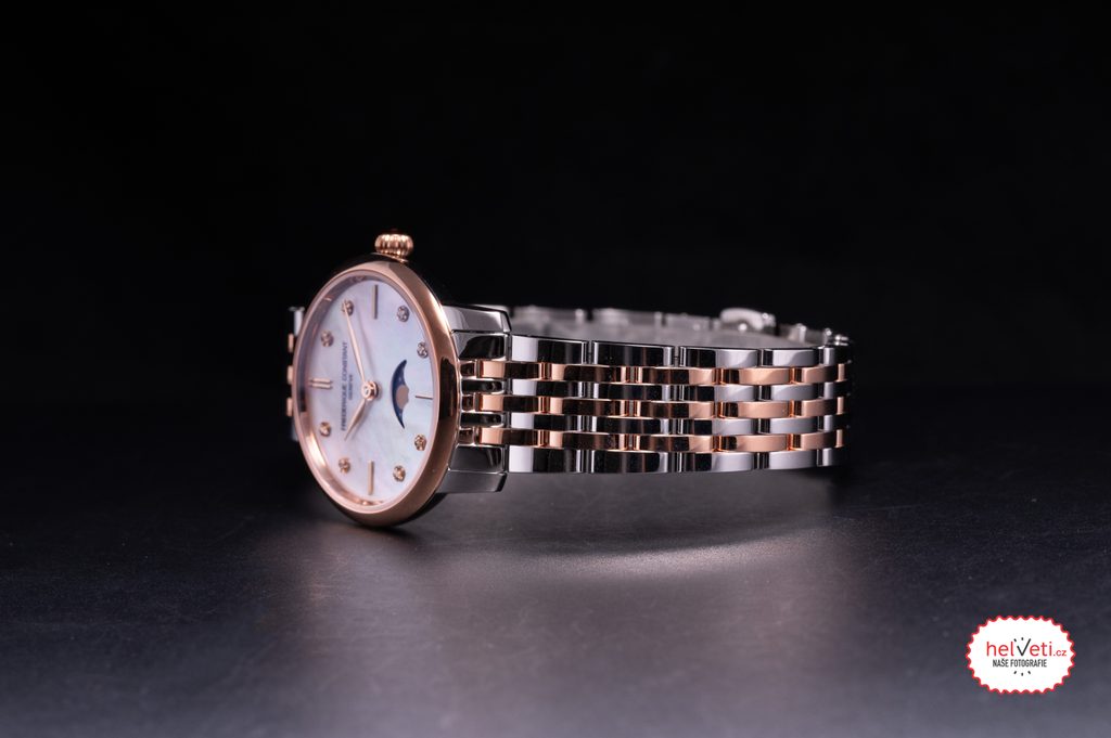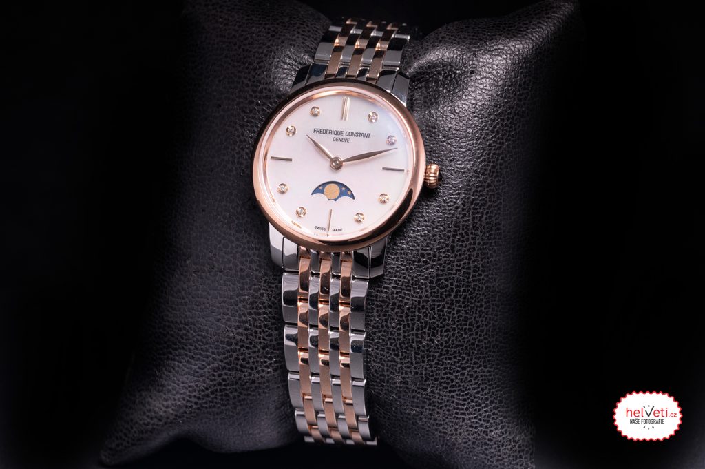 Hodinky Frederique Slimline Ladies Moonphase Quartz FC-206MPWD1S2B patria do série Slimline a vďaka svojmu elegantnému vzhľadu sú vhodné ako doplnok do spoločnosti. Hodinky sú však ideálne aj na každodenné nosenie. Hodinky radu Slimline sú mimoriadne pohodlné vďaka veľmi nízkej výške puzdier.