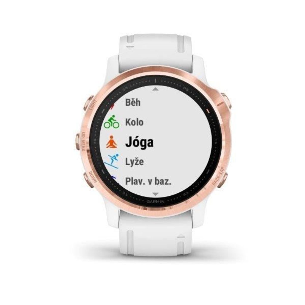 Športové hodinky Garmin fenix6S PRO Glass, RoseGold/White Band (MAP/Music) 010-02159-11 predtým 010-02159-11 sú ideálnou voľbou pre športovcov všetkých smerov. Ich funkcie sa dajú využiť nielen pri športe, ale aj pri každodennom nosení. Súčasťou balenia je poukaz TOPO Czech PRO - kód na stiahnutie mapy.