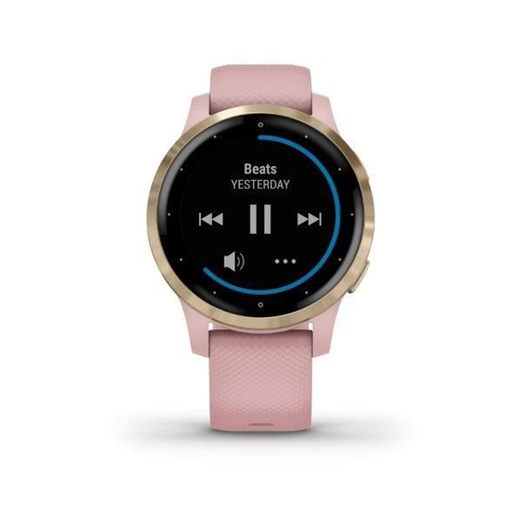 Puzdro inteligentných GPS hodiniek Garmin vívoactive4S LightGold/Pink Band 010-02172-33 je vyrobené z tvrdeného polyméru, luneta je oceľová s PVD úpravou. Vo vnútri tohto puzdra pracuje modul s množstvom funkcií, užitočných najmä pri športe. Hodinky sú vybavené pripojením WiFi a ponúkajú prehrávanie hudby z vlastnej pamäte, do ktorej môžete nahrať vlastné hudobné súbory, ako aj zoznamy skladieb zo streamovacích hudobných služieb, ako je Spotify alebo Deezer.