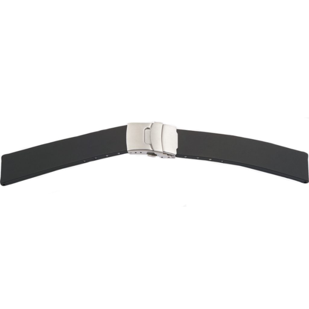 Remienok BEAR v čiernej far be so šírkou 18 mm a striebornou skladacou sponou s poistkou. Remienok má výraznú vanilkovú vôňu, ktorá sa vyskytuje len v pravom prírodnom kaučuku.
