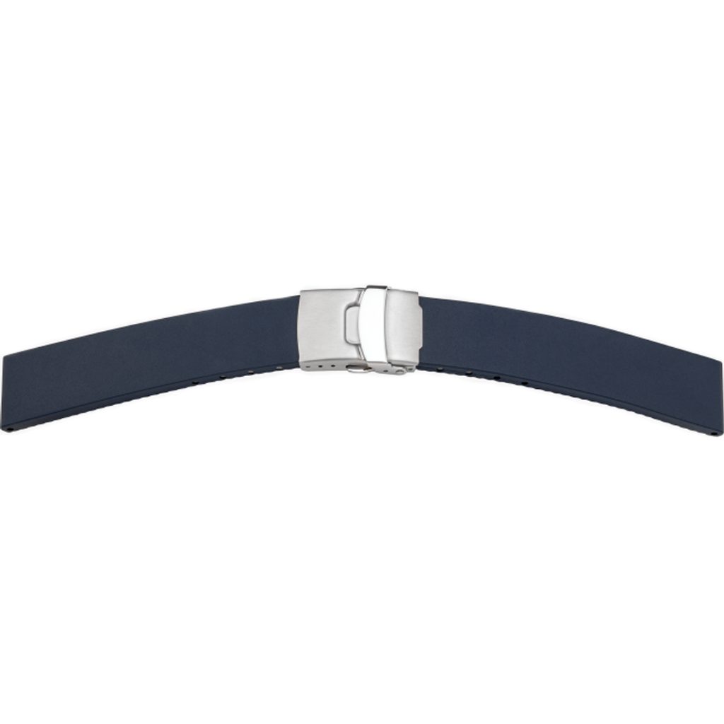Remienok BEAR v modrej farbe so šírkou 22 mm a striebornou skladacou sponou s poistkou. Remienok má výraznú vanilkovú vôňu, ktorá sa vyskytuje len v pravom prírodnom kaučuku.