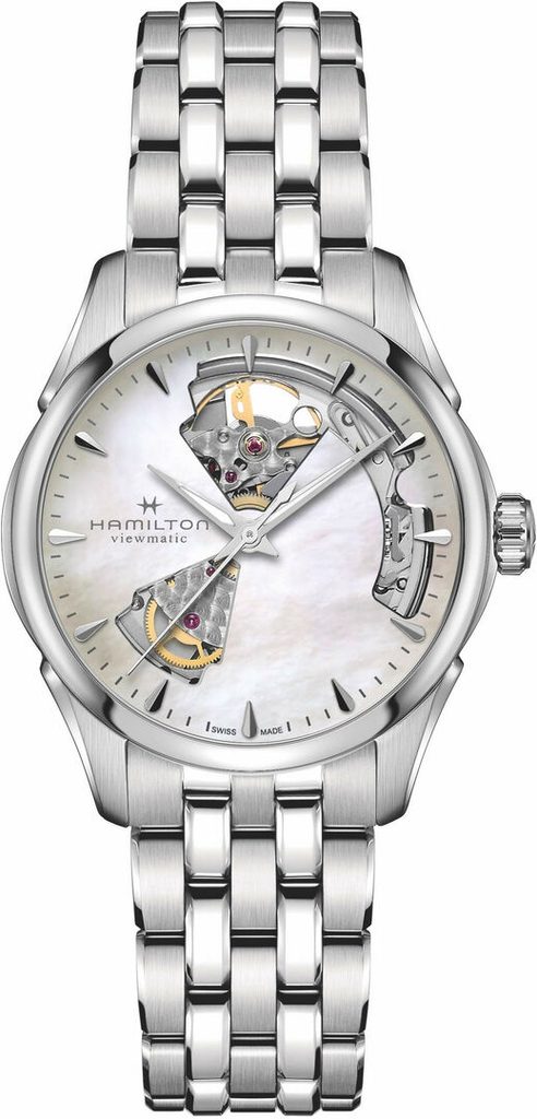 Hodinky Hamilton Jazzmaster Open Heart Lady Auto H32215190 sú súčasťou radu Jazzmaster a vďaka svojmu elegantnému dizajnu sú vhodné na výnimočnú príležitosť v spoločnosti, ale pokojne aj na každodenné nosenie. Vďaka otvorenému srdcu poskytuje model priehľadný ciferník na zotrvačníku.