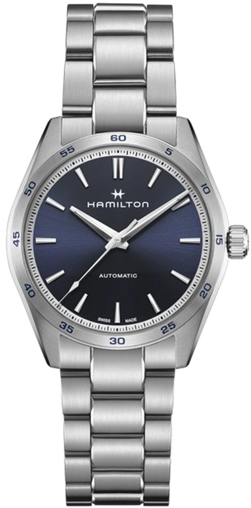 Modelový rad Jazzmaster Performer bol vytvorený pre tých, ktorí uprednostňujú funkčnosť a štýl zároveň, a ponúka výrazný, športový a elegantný vzhľad. Hodinky Hamilton Jazzmaster Performer Auto H36215140 poháňané automatickým strojčekom H-10 s rezervou chodu 80 hodín majú 38 mm puzdro z nehrdzavejúcej ocele s elegantným modrým ciferníkom a rafinovaným náramkom z nehrdzavejúcej ocele.