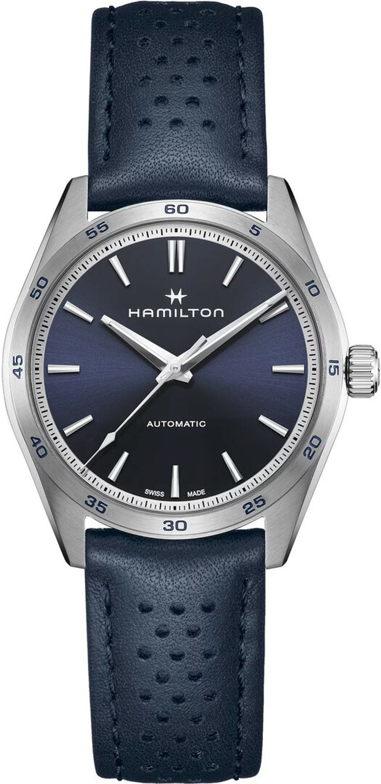 Séria Jazzmaster Performer bola vytvorená pre tých, ktorí uprednostňujú funkčnosť a štýl zároveň, a ponúka výrazný, športový a elegantný vzhľad. Hodinky Hamilton Jazzmaster Performer Automatic H36115640 poháňané automatickým strojčekom H-10 s rezervou chodu 80 hodín majú 38 mm puzdro z nehrdzavejúcej ocele s jemným modrým ciferníkom.