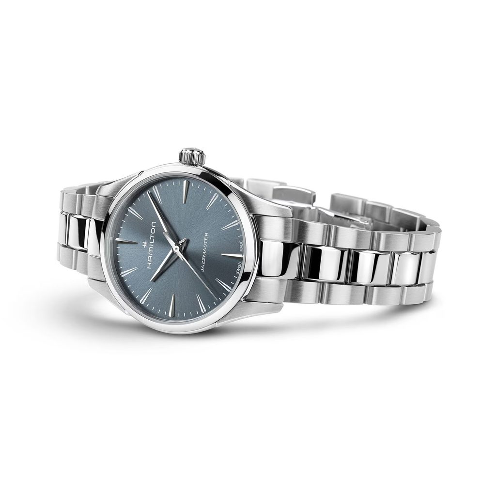 Nadčasový a rafinovaný model Jazzmaster Quartz 32 mm má tmavomodrý ciferník s povrchovou úpravou Sunburst, doplnený skeletovanými ručičkami v štýle Dauphine, ktoré predstavujú moderný pohľad na tradičný dizajn. Mimoriadne tenké puzdro v kombinácii s precízne brúsenými a leštenými detailmi vytvára elegantne štíhlu siluetu. Klasické spoločenské hodinky navrhnuté pre prirodzenú sofistikovanosť.