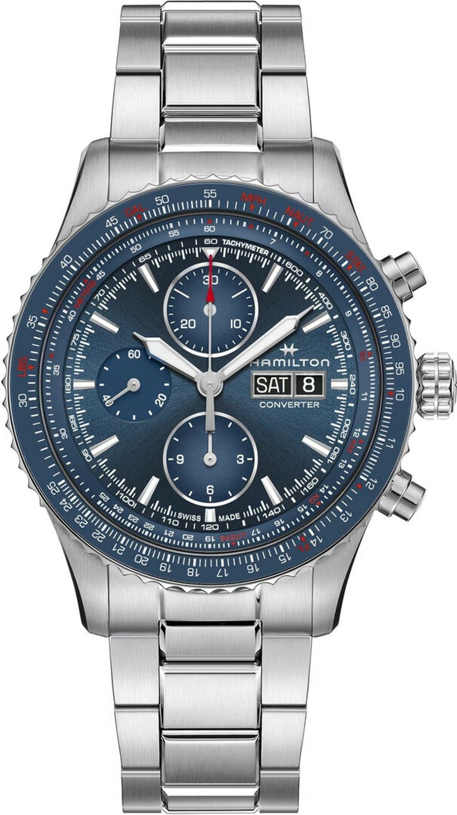 Hodinky Hamilton Khaki Aviation Converter Auto Chrono majú všetko, čo potrebujete na svoje ďalšie dobrodružstvo v oblakoch. Tento vysoko výkonný nástroj prevádza jednotky, ako sú stopy na metre alebo míle na kilometre.