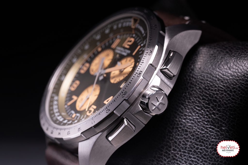 Švajčiarsky quartzový strojček ETA G10.962 spoľahlivo tiká v puzdre. Strojček má funkciu "hacking" (zastavenie sekundovej ručičky na príkaz). Okrem zobrazenia času majú hodinky praktickú funkciu stopiek (chronograf), ktorá sa ovláda dvoma tlačidlami na pravej strane puzdra.