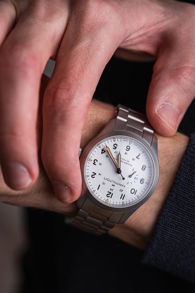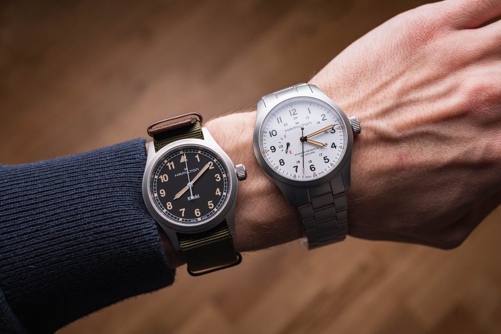 Modely Hamilton Khaki Field Mechanical Power Reserve ctia tradičný dizajn a základné funkcie rodiny Khaki Field a zároveň obsahujú moderné funkcie a najnovšie hodinárske technológie a inovácie. Sú vybavené novým strojčekom H-23 s ručným náťahom, ktorý vyvinula spoločnosť ETA exkluzívne pre Hamilton, a umožňuje (po prvýkrát) vizualizáciu 80-hodinovej rezervy chodu priamo na ciferníku. Biely ciferník, opatrený robustným khaki zeleným remienkom NATO, hrdo zobrazuje "80-hodinovú rezervu chodu" a "F" pre plnú a "E" pre prázdnu kazetu, aby zdôraznil túto výnimočnú a úžitkovú funkciu.