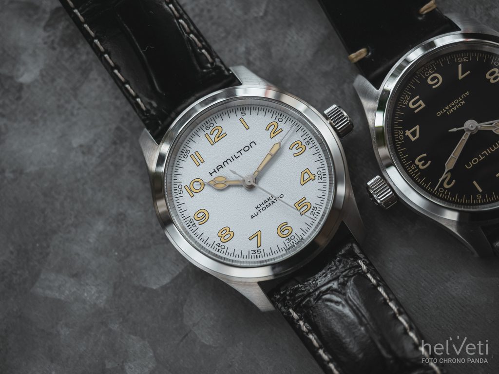Khaki Field Murph Auto 38mm sú tu a teraz s bielym ciferníkom! Jedny z najslávnejších hodiniek strieborného plátna, medzi fanúšikmi známe ako "The Murph", sa vyrábajú v kompaktnom 38 mm puzdre z nehrdzavejúcej ocele. Hodinky s mimoriadne čitateľným bielym ciferníkom, béžovými ručičkami s povrchovou úpravou Super-LumiNova® vo vintage štýle a čiernym koženým remienkom odrážajú kľúčové estetické kódy svojho 42 mm predchodcu. Tento model Khaki Field Murph Auto, poháňaný automatickým strojčekom H-10 s 80-hodinovou rezervou chodu, si získa srdcia milovníkov menších hodiniek.