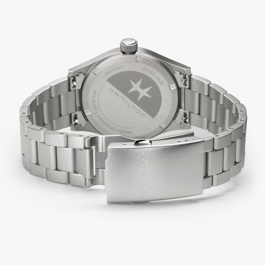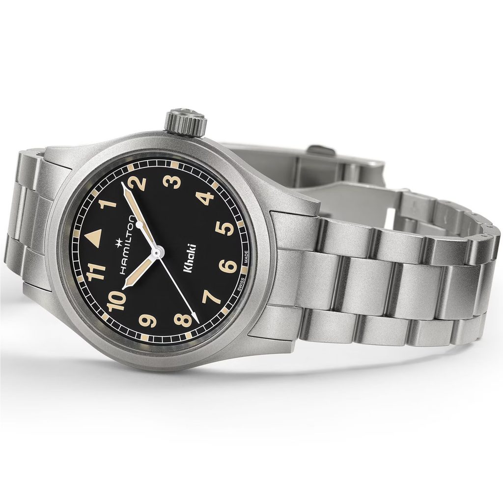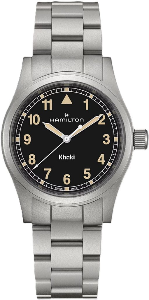 Modely Khaki Field Quartz sú pripravené na dobrodružstvo, sú spoľahlivým a odolným spoločníkom pripraveným na prieskum. Hodinky Khaki Field Quartz, ktoré sú kombináciou presnosti, inovácií a dizajnu zameraného na úžitkové vlastnosti, kombinujú 38 mm čisto čierny ciferník s moderným kovovým náramkom.