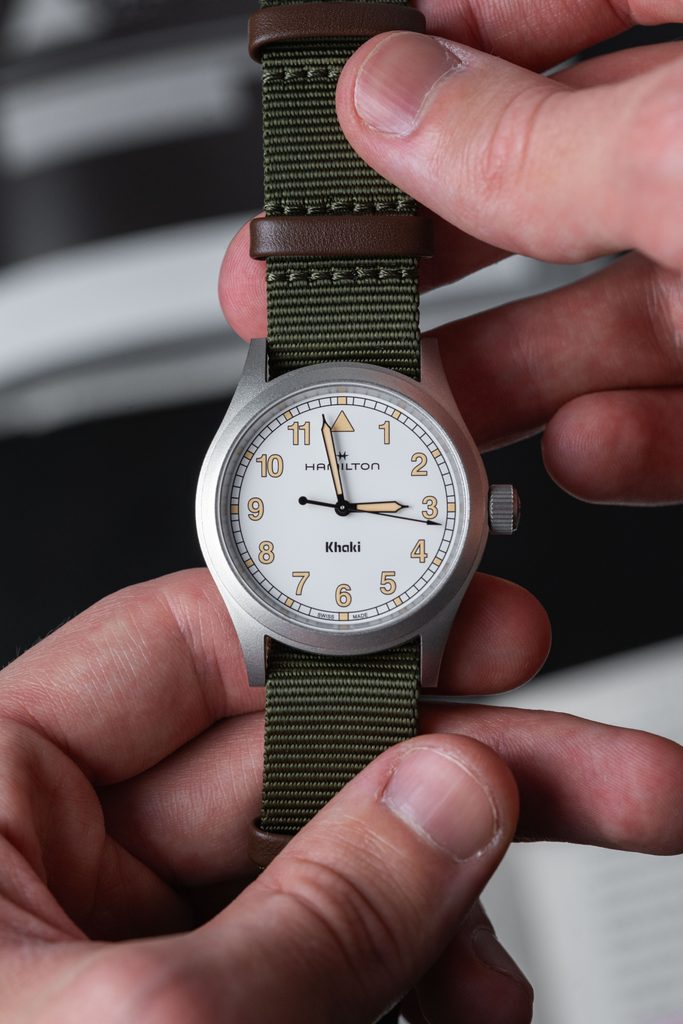 Model Hamilton Khaki Field Quartz 38 mm H69401910 zaujme najmä milovníkov vojenského štýlu. Dizajn hodiniek odkazuje na spoluprácu značky s americkou armádou. Nový model Khaki Field je vernou kópiou svojho pôvodného predchodcu zo 60. rokov minulého storočia a je verný vojenskému dedičstvu značky Hamilton. Ide o originálne hodinky inšpirované vojenským štýlom, ktoré sú vyrobené tak, aby vydržali.
