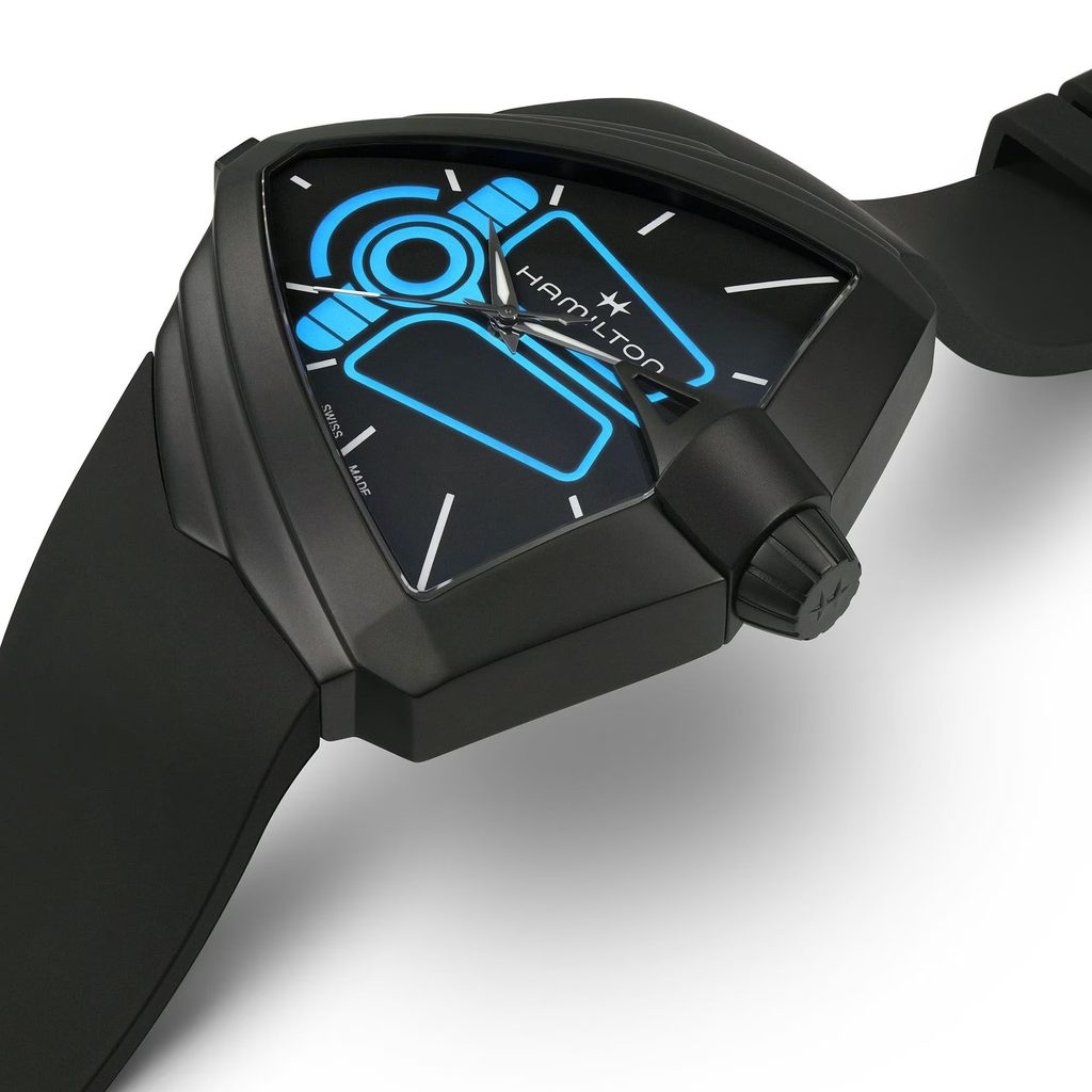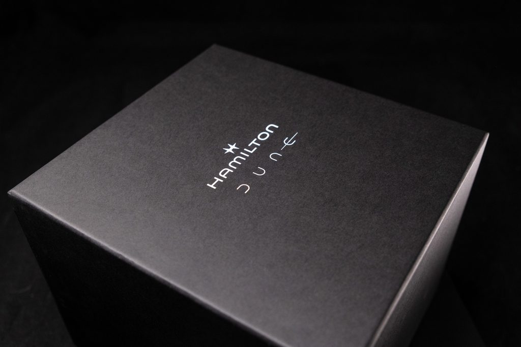 Limitovaná edícia hodiniekVentura Edge Dune je inšpirovaná náramkovým zariadením z filmu a má matné čierne puzdro s PVD úpravou. Svietiaci, zvodný modrý ciferník je odkazom na nezameniteľné modré oči ľudu Fremen. Tlačidlo na ľavej strane puzdra aktivuje svietiace modré línie, ktoré kopírujú dizajn ciferníka "púštnych hodiniek". Táto limitovaná edícia sa dodáva v špeciálnej krabičke inšpirovanej filmom, ktorú si fanúšikovia filmov a kníh, ako aj zberatelia, nebudú chcieť nechať ujsť! Celkovo sa vyrobí len 3 000 kusov pre celý svet!
