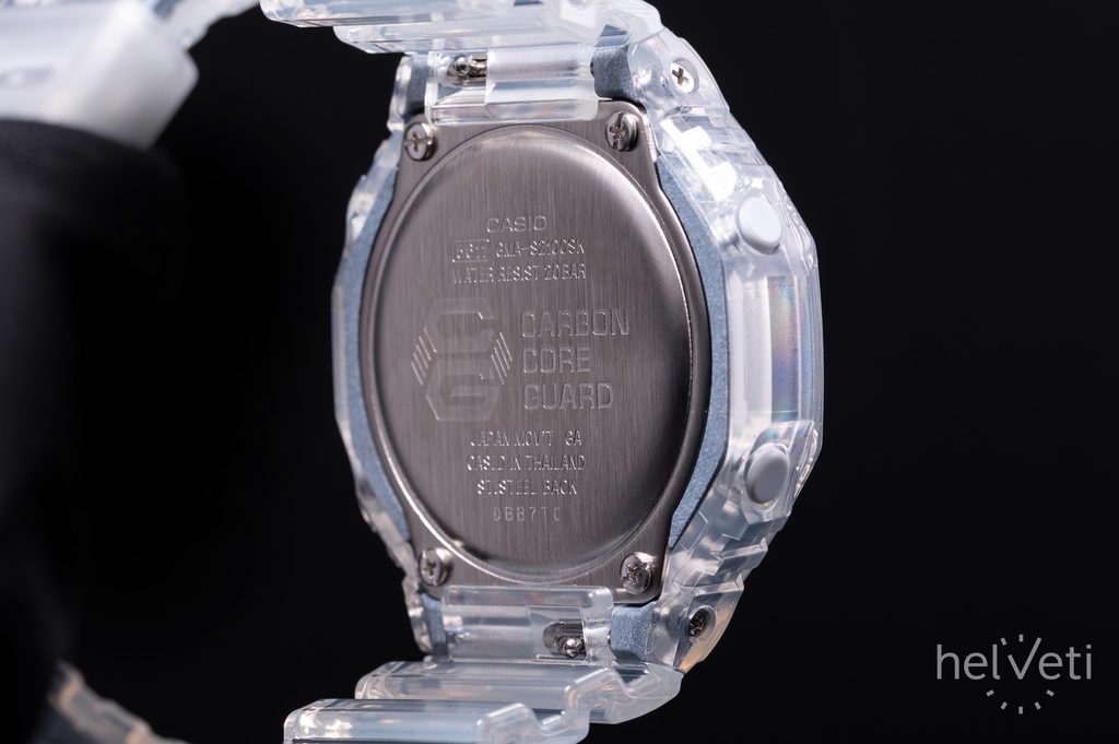 Ako sme od tohto radu očakávali, hodinky sa vyznačujú remeselným spracovaním, vďaka ktorému vydržia aj drsné podmienky. Vysokú odolnosť puzdra zabezpečuje konštrukcia Carbon Core Guard. Ten je vyrobený zo živice, vystužený a spevnený uhlíkovými vláknami, špeciálna je aj konštrukcia tlačidiel, ktorá chráni model pred vniknutím nečistôt. Uvedená kombinácia umožňuje vytvoriť kompaktnejšiu a ľahšiu jednotku.