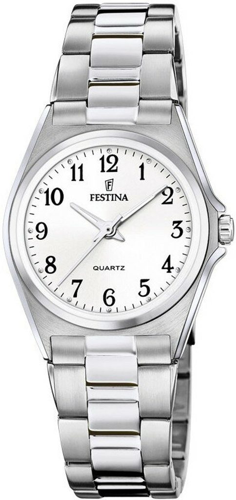Dámske hodinky Festina 20553/1 sú quartzové hodinky na oceľovom strojčeku so svetlým ciferníkom.