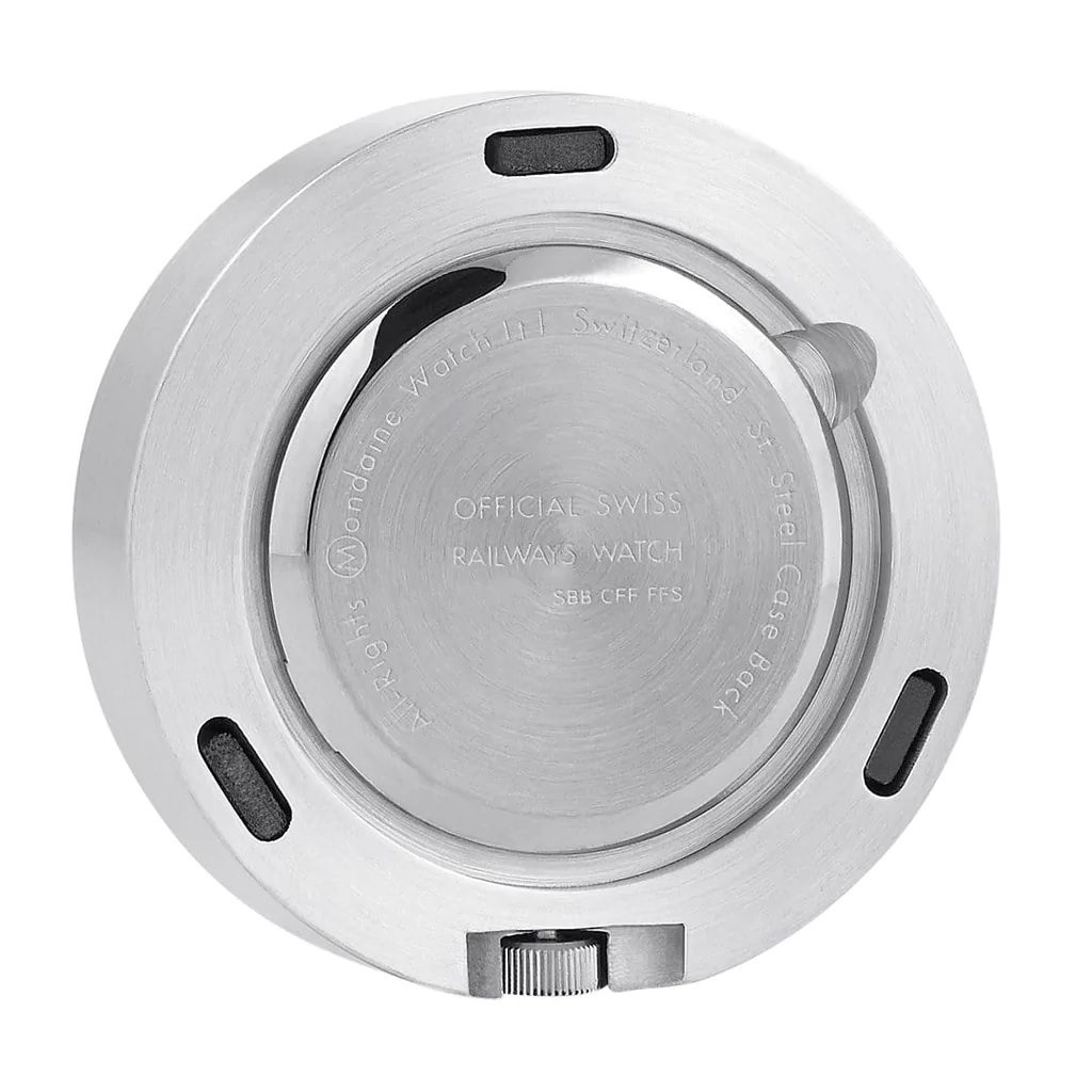 Hodiny Mondaine A660.30318.81SBB majú hliníkové puzdro s priemerom 5 cm a skrývajú v sebe batériový quartzový strojček. Ciferník je chránený tvrdeným minerálnym sklíčkom.