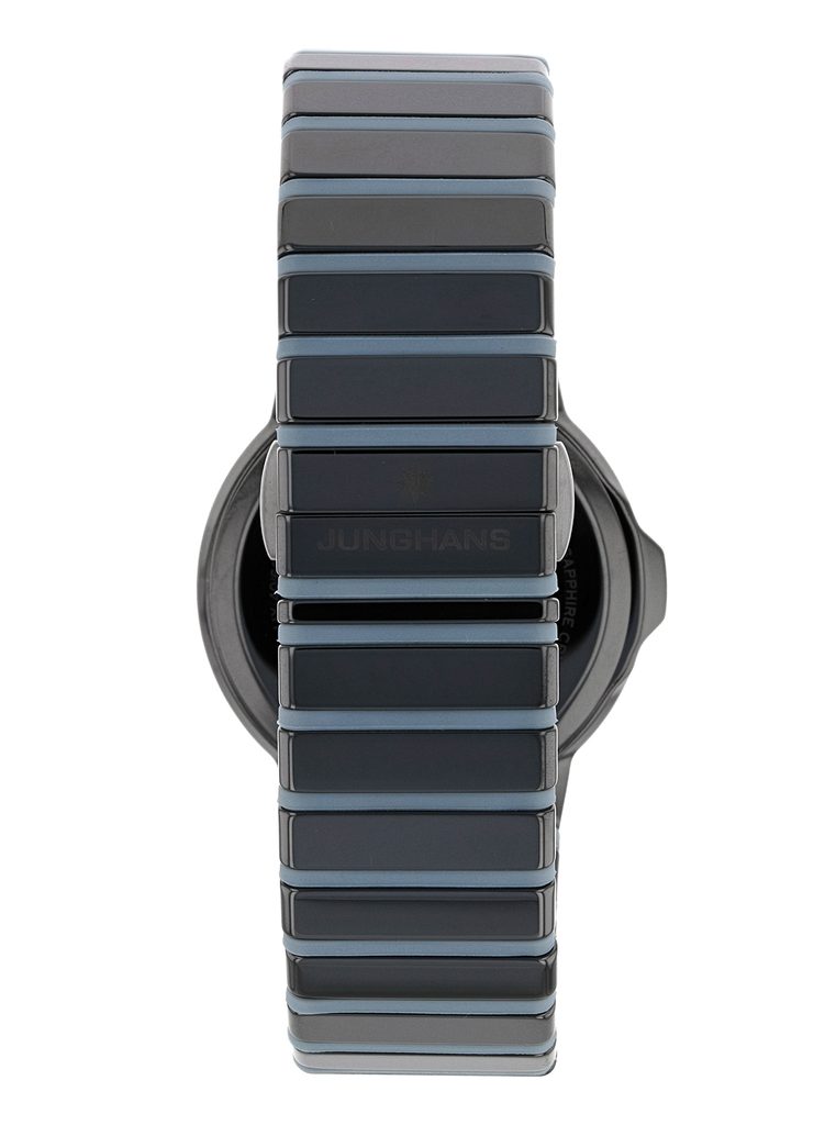 Model Junghans 18/1400.44 je vďaka možnosti prijímania rádiového signálu vybavený aj funkciou automatického kalendára, funkciou letného času alebo automatickou synchronizáciou času pri prechode medzi časovými pásmami. Ciferník je chránený zafírovým sklíčkom, ktoré je vysoko odolné proti poškriabaniu. Puzdro s priemerom 40,4 mm je rovnako ako náramok vyrobené z keramiky. Vďaka vodotesnosti 5 ATM (50 metrov ) vydrží kontakt s vodou, ktorý možno prirovnať k sprchovaniu alebo umývaniu rúk.