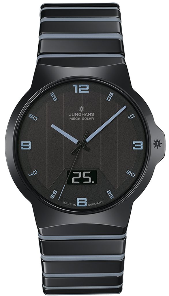 Nemecké hodinky Junghans Force Mega Solar 18/1400.44 zo série Performance majú kombinovaný analógový a digitálny ciferník, kde na prvý pohľad prevláda jednoduchosť a prehľadnosť.