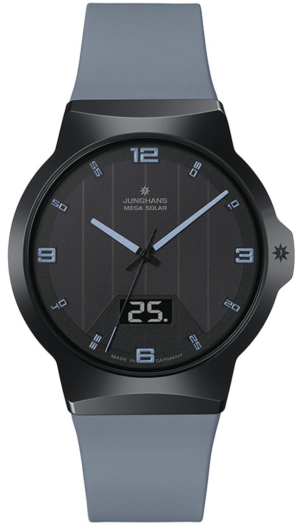 Nemecké hodinky Junghans Force Mega Solar 18/1401.00 zo série Performance majú kombinovaný analógový a digitálny ciferník, kde na prvý pohľad prevláda jednoduchosť a prehľadnosť.