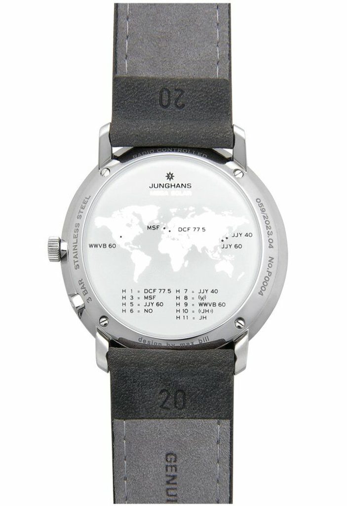 Puzdro tohto modelu je vyrobené z titánu a jeho eleganciu umocňuje kožený remienok. Ciferník pôsobí veľmi elegantným dojmom vďaka jednoduchosti umeleckého štýlu Bauhaus. Chráni ho vypuklé zafírové sklíčko s obojstrannou antireflexnou vrstvou. Takže sa nemusíte obávať žiadnych škrabancov. Na ciferníku nájdeme mapu sveta s polohou rádiových vysielačov, podľa ktorej sa hodinky nastavujú. Hodinky môžete nastaviť aj pomocou aplikácie Junghans MEGA App v smartfóne, ktorá je k dispozícii pre Android a iOS. Vodotesnosť je 30 metrov (3 ATM ), takže hodinky vydržia bežný kontakt s vodou, napríklad pri daždi alebo umývaní rúk.