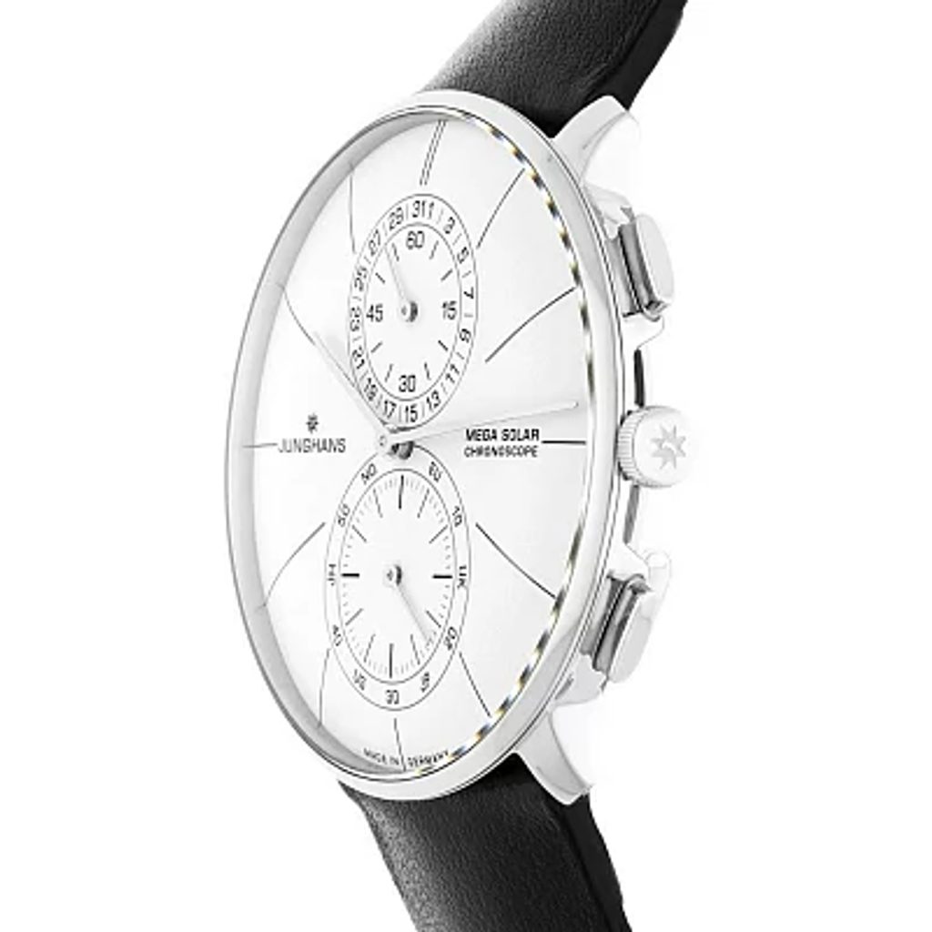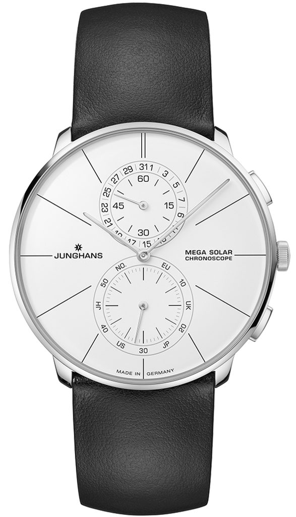 Nemecké hodinky Junghans Meister Fein Chronoscope Mega Solar 59/4200.00 zo série Meister nesú odkaz z prvej polovice 20. storočia, keďže v podobnom štýle sa v 30. až 60. rokoch 20. storočia vyrábali hodinky navrhnuté vtedajším dizajnérom Antonom Zieglerom. Prinášajú tiež dotyk modernej hodinárskej technológie v podobe rádiom riadeného strojčeka. Tento model rozhodne patrí medzi najelegantnejšie rádiom riadené hodinky na svete a navyše je poháňaný slnečnou energiou.