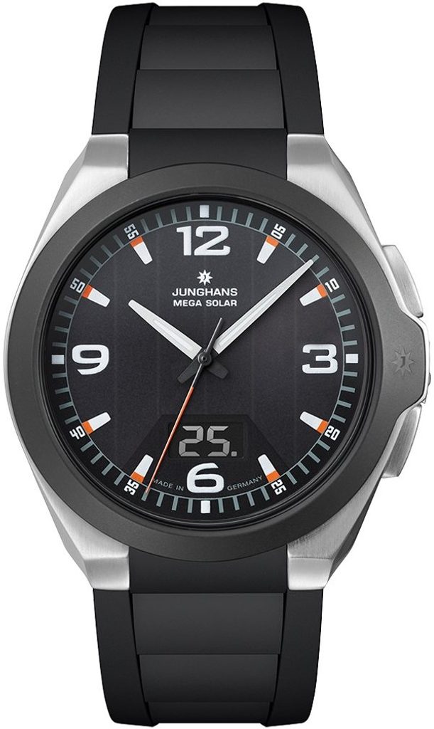 Nemecké hodinky Junghans Spectrum Mega Solar 18/1526.00 zo série Performance majú kombinovaný analógový a digitálny ciferník, v ktorom na prvý pohľad prevláda jednoduchosť a prehľadnosť.
