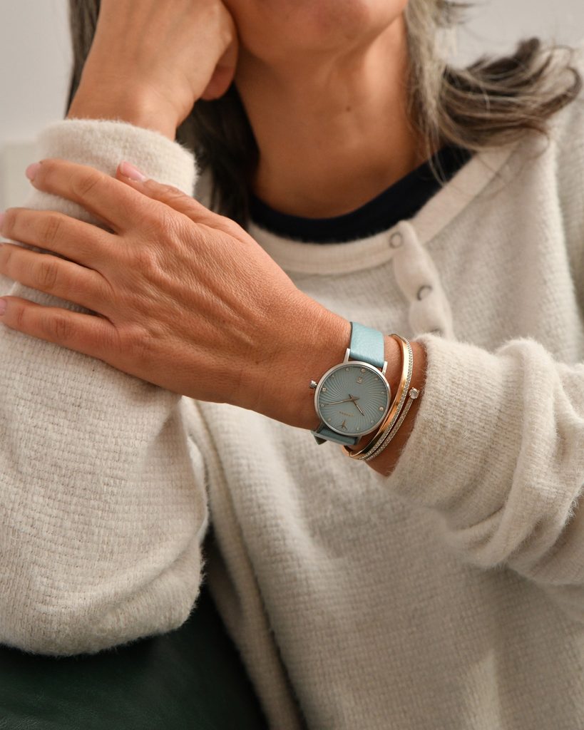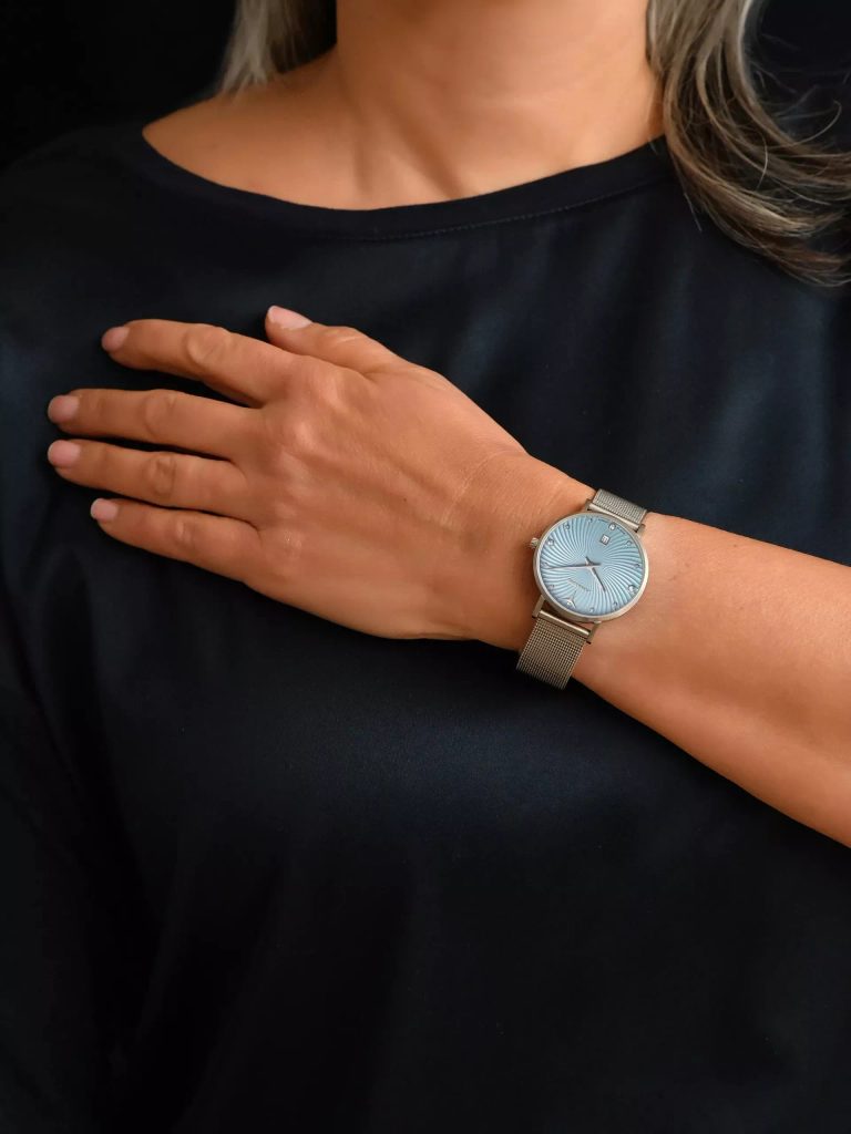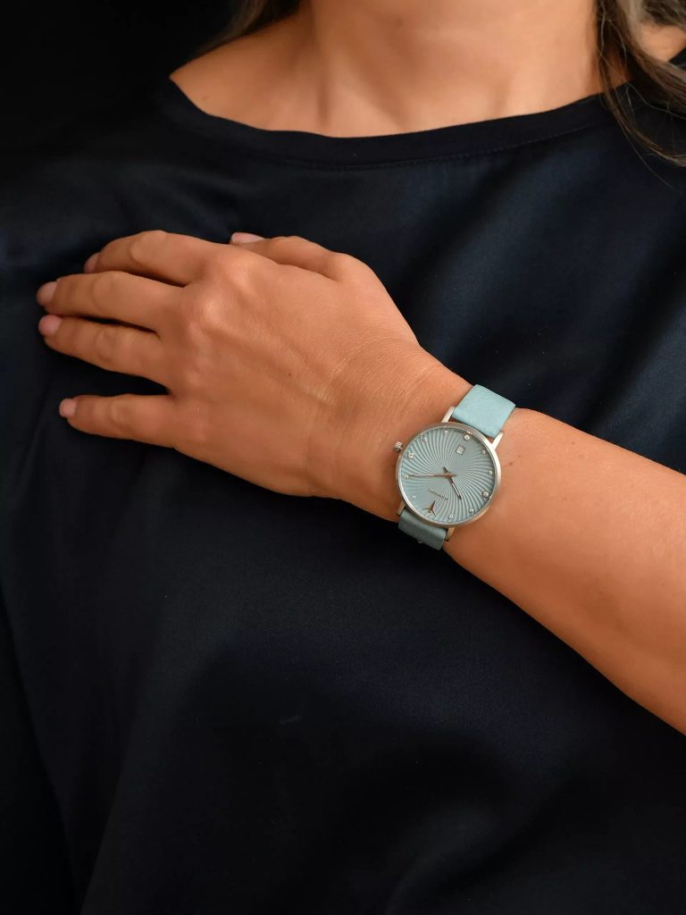 Vďaka priemeru puzdra 34 mm sa hodinky Junkers Annelise 34 951.02.21 hodia na väčšinu dámskych zápästí. Vodotesnosť 3 ATM znamená, že hodinky zvládnu mierny kontakt so striekajúcou vodou, napríklad pri umývaní rúk alebo v daždi.