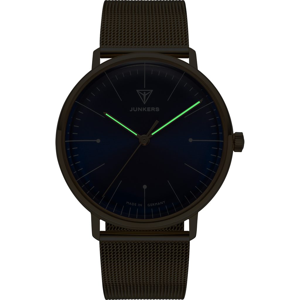 Nemecká značka Junkers je priamo spätá s fascinujúcou históriou letectva a značkou legendárnych lietadiel Junkers. A to nielen svojim názvom, ale predovšetkým prevzatím rodinných tradícií a filozofie pôvodnej leteckej značky. Najzaujímavejšie modely hodiniek Junkers vychádzajú z pôvodných vzorov ciferníkov určených pre pilotov a navigátorov – Baumuster A a Baumuster B. Ďalšie modelové rady, ktoré vám predstavíme, spája tematika legendárnych lietadiel a čistých línií bauhausovského designu. Nechýbajú samozrejme veľmi precízne prevedenie, kvalitné švajčiarske a japonské strojčeky a tiež dámske modely.