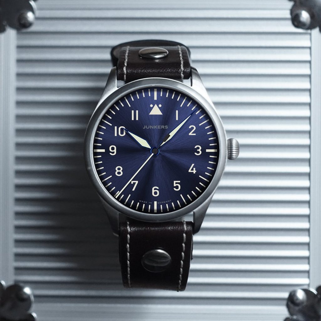 Logo leteckých hodiniek Junkers nesie bájneho Ikara - lietajúceho človeka. Samotné názvy modelových radov odkazujú na slávne lietadlá. Napríklad Junkers JU 52, Junkers G38 a podobne. Za veľmi podarený máme rad Junkers Bauhaus. Táto značka používa širokú škálu strojčekov (od japonských Seiko či Citizen/Miyota až po ETA Valjoux 7750), preto si v jej ponuke vyberie každý.