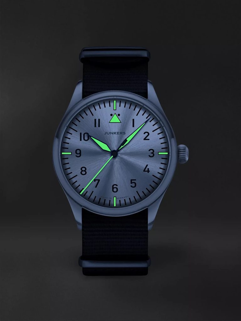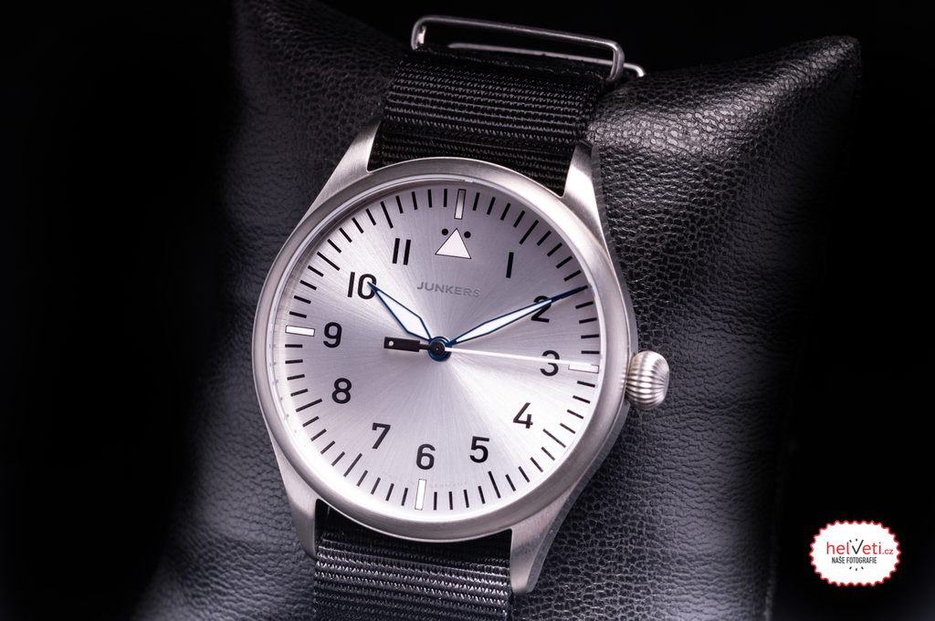 Hodinky Junkers 920.01.03.N majú puzdro z nehrdzavejúcej ocele, v ktorom sa nachádza japonský batériový strojček Miyota 2035. Na ciferníku, ktorý je navrhnutý v štýle B-Uhr (v tomto prípade vzor A), nájdeme výrazné ručičky, ktoré zabezpečujú hodinkám vynikajúcu čitateľnosť. Hodinky sa dodávajú s praktickým nylonovým náramkom.