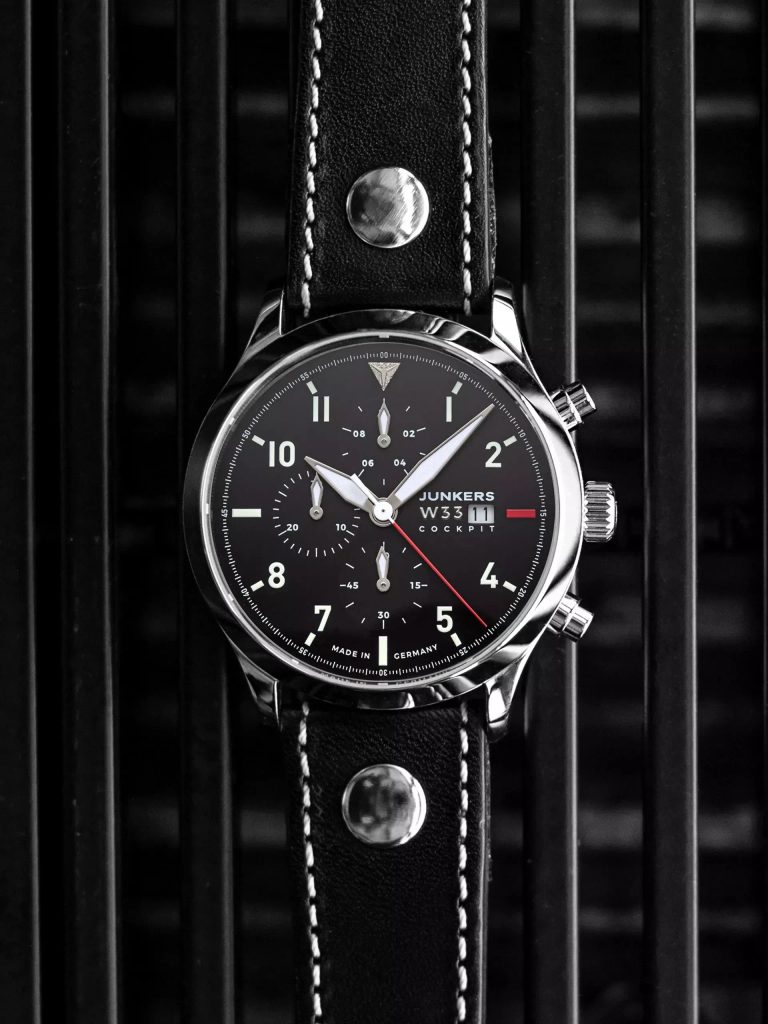 Takmer pred 100 rokmi, v roku 1926, vzlietol legendárny Junkers W33 na svoj prvý let. Chronograf Junkers Cockpit W33 nadväzuje na tento historický okamih a spája presnú technológiu s autentickým dizajnom originálu.