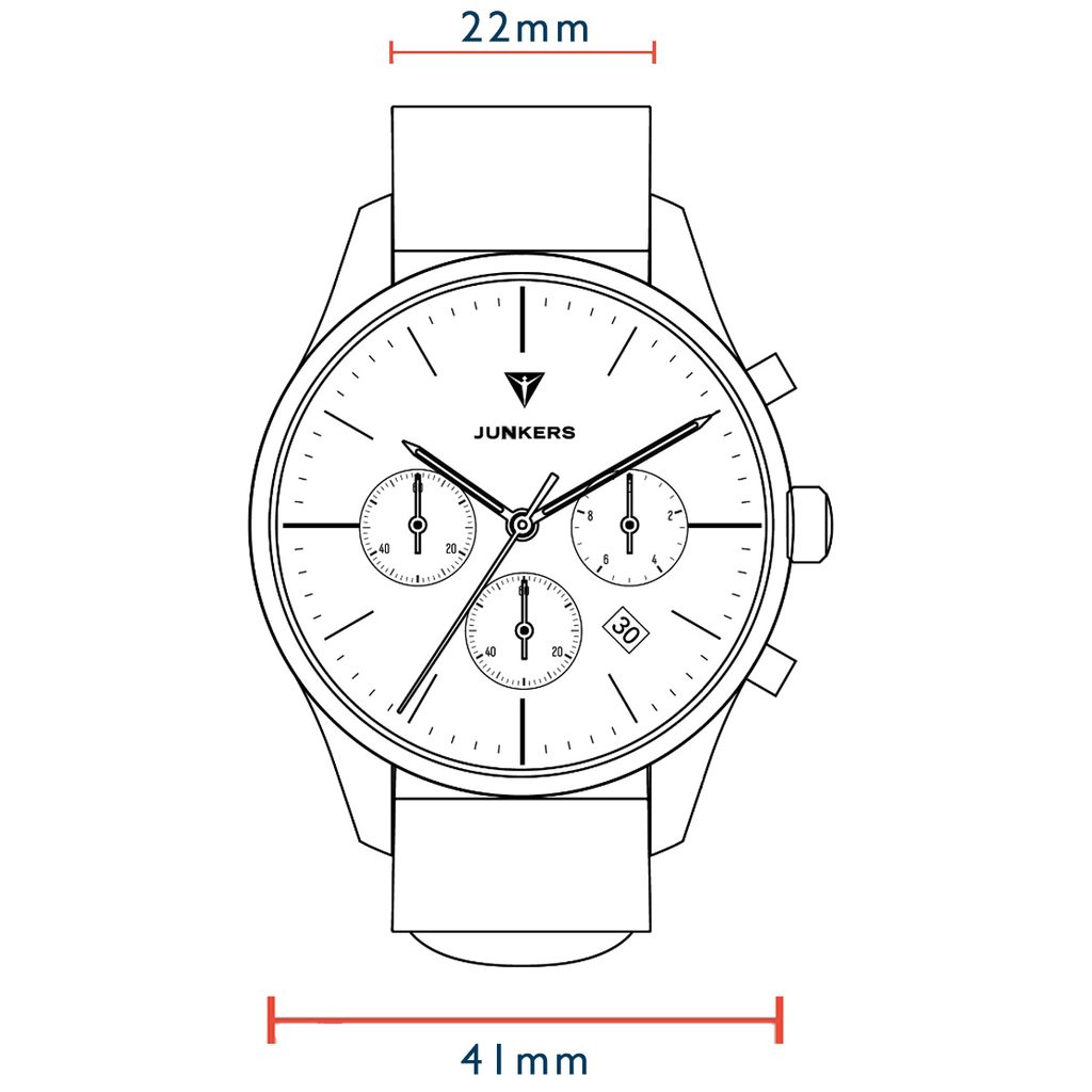 Hodinky Junkers Dessau Herren Chronograph 919.01.02.M z modelového radu Dessau Herren ponúkajú jednoduchý, prehľadný ciferník. Ocenia ho najmä priaznivci spoločenských hodiniek a minimalistického dizajnu.