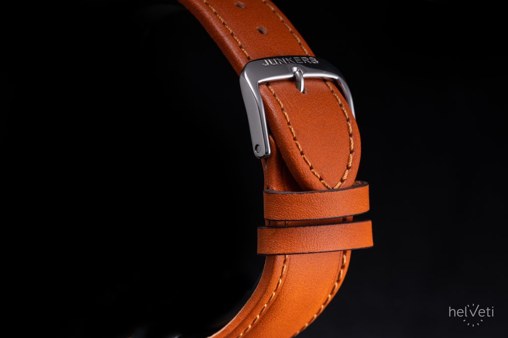 Sklo hodiniek Junkers 919.01.04 je zafírové, a preto je mimoriadne odolné proti poškriabaniu. Vodotesnosť tohto modelu je 50 m (5 ATM), takže zvládne základný kontakt s vodou, ako je umývanie rúk alebo sprchovanie. Vďaka priemeru puzdra 41 mm sa hodinky hodia na väčšinu pánskych zápästí. Rozmer od rúčky k rúčke ("výška" hodiniek vrátane nožičiek) je 52 mm.