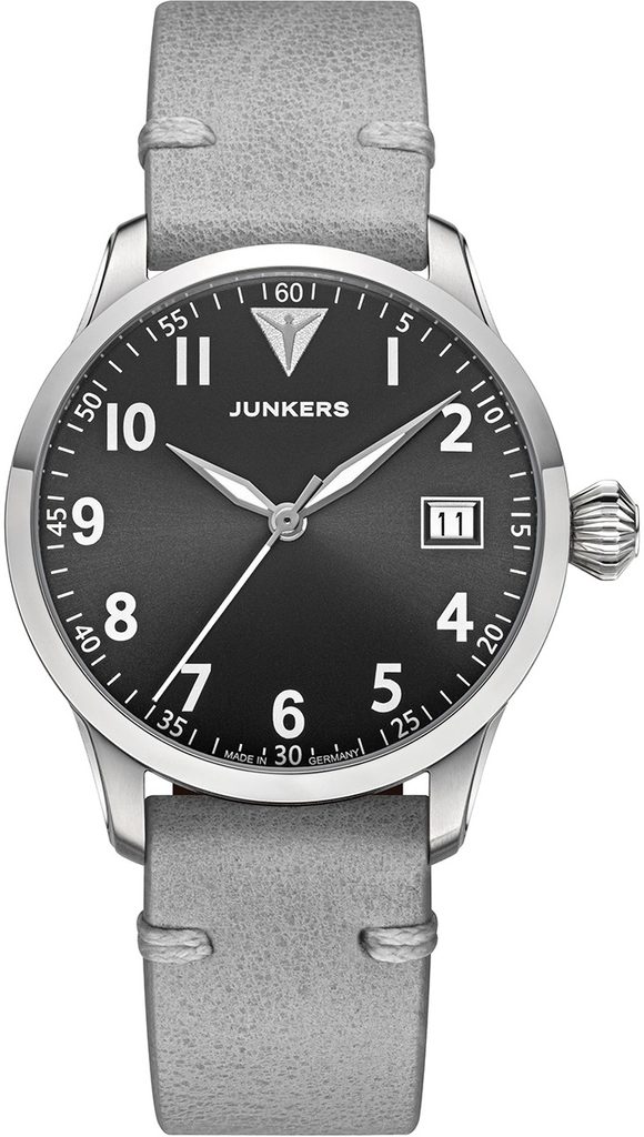 Hodinky Junkers 970.01.08 majú puzdro vyrobené z ušľachtilej ocele, v ktorom sa nachádza švajčiarsky batériový strojček Ronda 715. Ciferník má výrazný pilotný štýl, ktorý hodinkám dodáva skvelú čitateľnosť. Hodinky držia na zápästí vďaka kvalitne spracovanému sivému koženému remienku so striebornou tŕňovou sponou.