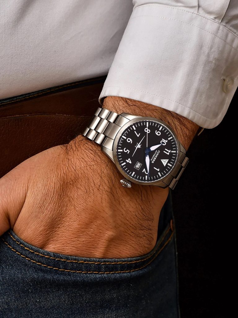 Hodinky Junkers Flieger Automatik 958.01.02.M z modelového radu Flieger vychádzajú z palubných prístrojov z čias, keď sa ešte lietalo s analógovými displejmi a pohľadom von. Tieto hodinky sú zredukované na svoju skutočnú funkciu: prehľadné zobrazenie času, ktoré je viditeľné na prvý pohľad.