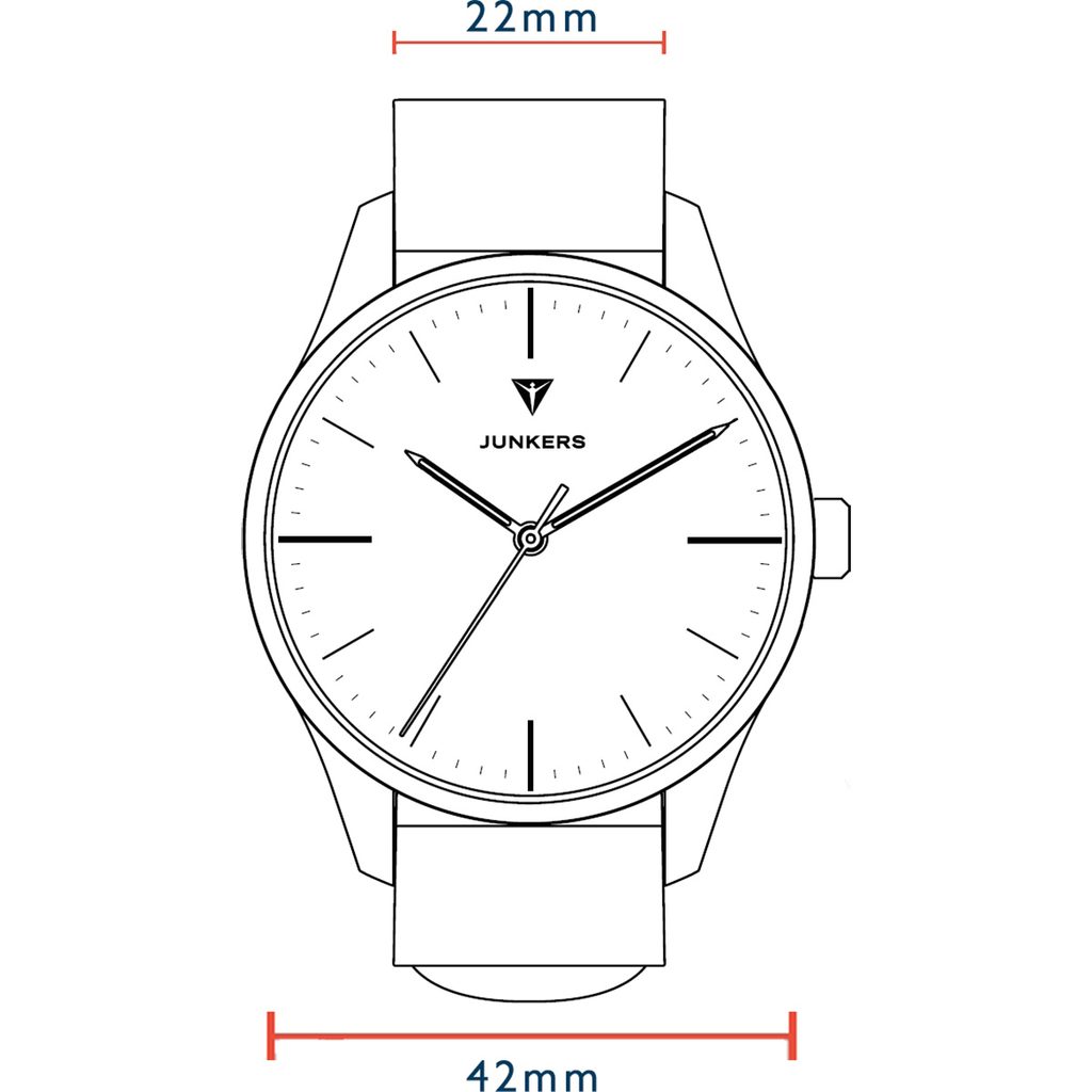 Sklo hodiniek Junkers 902.03.03.M je zafírové, a preto je mimoriadne odolné proti poškriabaniu. Vodotesnosť tohto modelu je 50 m (5 ATM), takže zvládne kontakt s vodou, napríklad dážď alebo sprchu. Vďaka priemeru puzdra 42 mm sa hodinky hodia na väčšinu pánskych zápästí. Rozmer od rúčky po rúčku ("výška" hodiniek vrátane nožičiek) je 50 mm.
