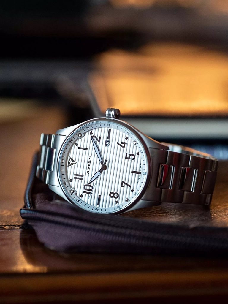 Nemecká značka Junkers je priamo spätá s fascinujúcou históriou letectva a značkou legendárnych lietadiel Junkers. A to nielen svojim názvom, ale predovšetkým prevzatím rodinných tradícií a filozofie pôvodnej leteckej značky. Najzaujímavejšie modely hodiniek Junkers vychádzajú z pôvodných vzorov ciferníkov určených pre pilotov a navigátorov – Baumuster A a Baumuster B. Ďalšie modelové rady, ktoré vám predstavíme, spája tematika legendárnych lietadiel a čistých línií bauhausovského designu. Nechýbajú samozrejme veľmi precízne prevedenie, kvalitné švajčiarske a japonské strojčeky a tiež dámske modely.