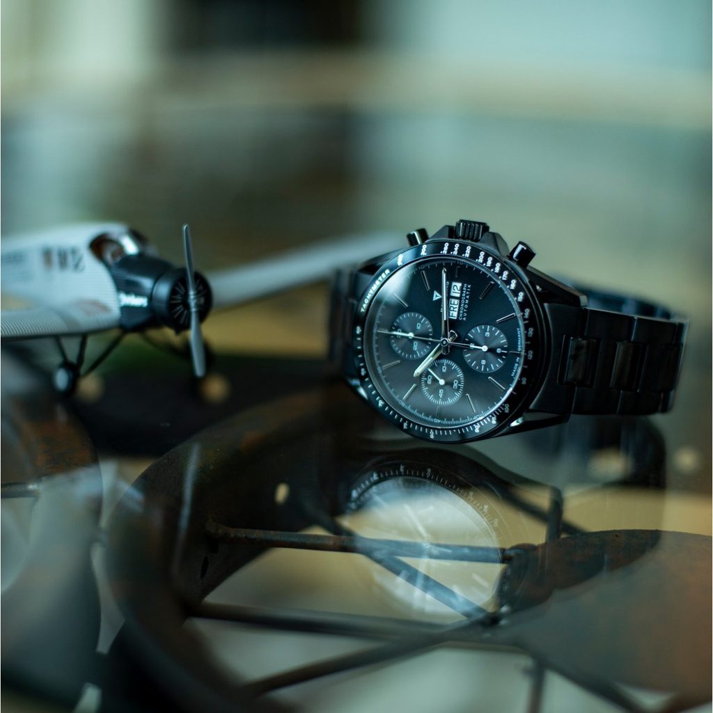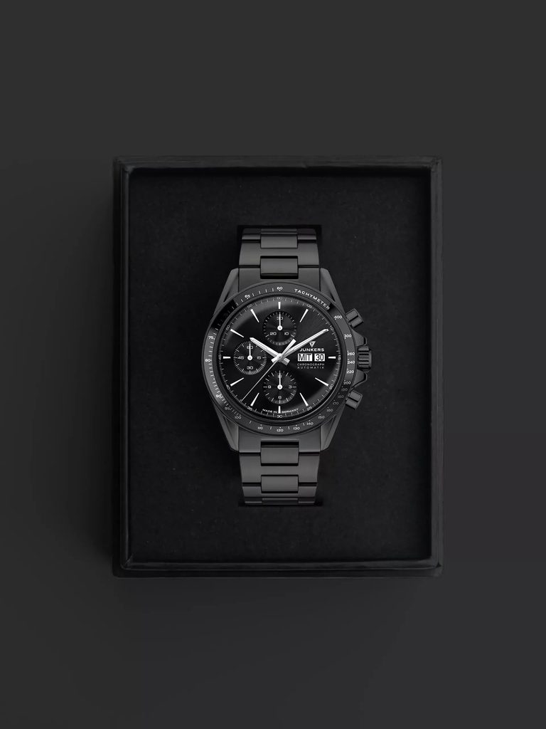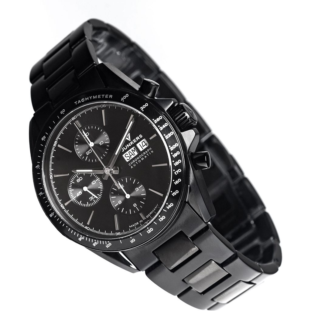 Hodinky Junkers 9.22.01.02.M majú puzdro z nehrdzavejúcej ocele s čiernou PVD úpravou, v ktorom sa nachádza švajčiarsky mechanický strojček ETA Valjoux 7750 s automatickým naťahovaním a 25 drahokamami. Pracuje s frekvenciou 28 800 polfrekvencií za hodinu a je vybavený ukazovateľom dátumu a dňa v týždni na tradičnej tretej hodinovej pozícii. Tento model je vybavený aj funkciou stopiek a tachymetrom, ktorý slúži na meranie priemernej rýchlosti na presne definovanom úseku. Hodinky sa dodávajú so štýlovým oceľovým náramkom.