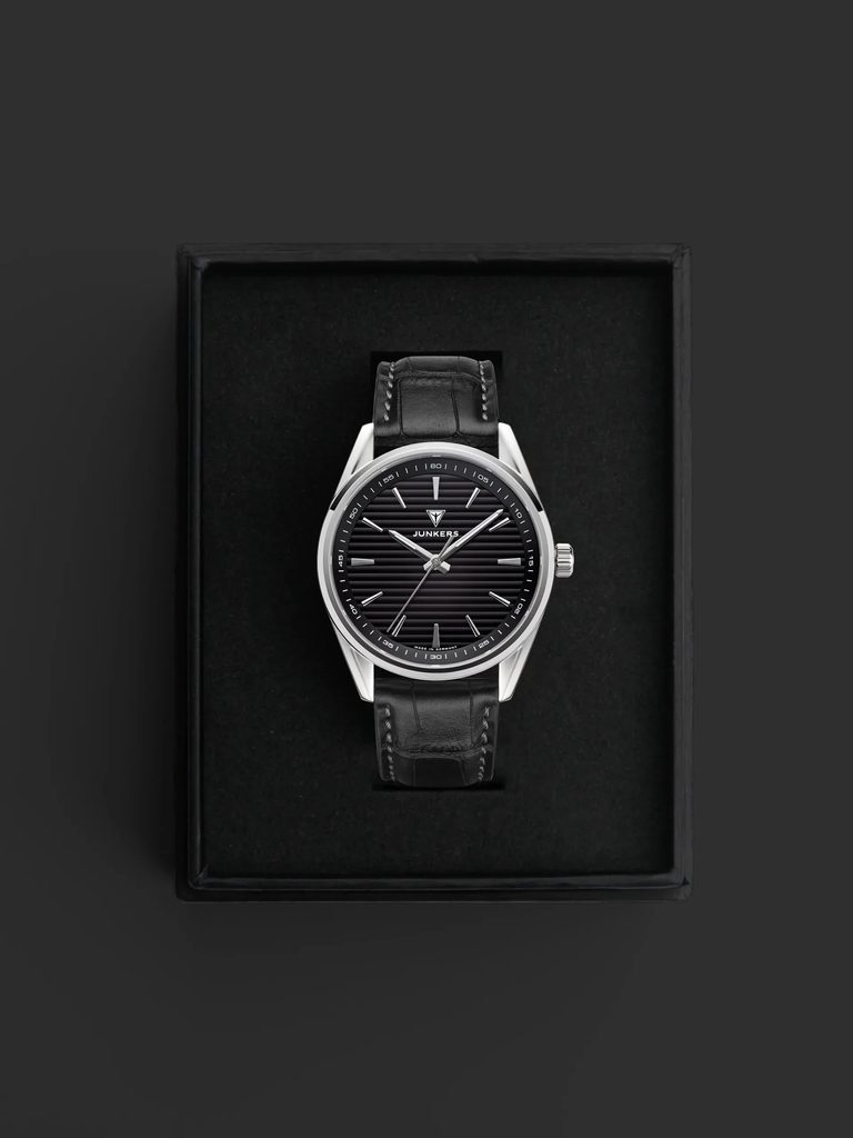 Hodinky Junkers 932.02.02 majú puzdro z ušľachtilej ocele s japonským batériovým strojčekom Citizen/Miyota 2035. Ciferník s detailom vlnitého kovu z lietadla Junkers zobrazuje pilotný štýl, ktorý hodinkám dodáva skvelú čitateľnosť. Hodinky sa dodávajú so štýlovým koženým náramkom.