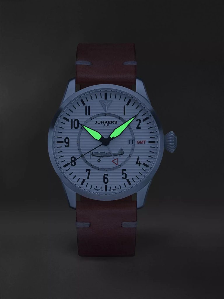 Hodinky Junkers Sonderedition A50 GMT 953.02.03 z modelového radu Sondereditionen sú hodinky s atraktívnym leteckým dizajnom. Sú pripomienkou lietadla Junkers A50 Junior, prvého čisto športového lietadla navrhnutého a vyrobeného v období rozkvetu v 20. rokoch minulého storočia. Zámerom spoločnosti Junkers bolo priniesť takzvaný "letecký automobil" ľuďom prostredníctvom sériovej výroby. Žiaľ, po vypuknutí svetovej hospodárskej krízy sa očakávané čísla predaja nenaplnili. Od roku 2022 bude technicky špičková replika k dispozícii v ultraľahkej verzii pre súkromných pilotov, čím sa konečne naplní vízia Huga Junkersa.