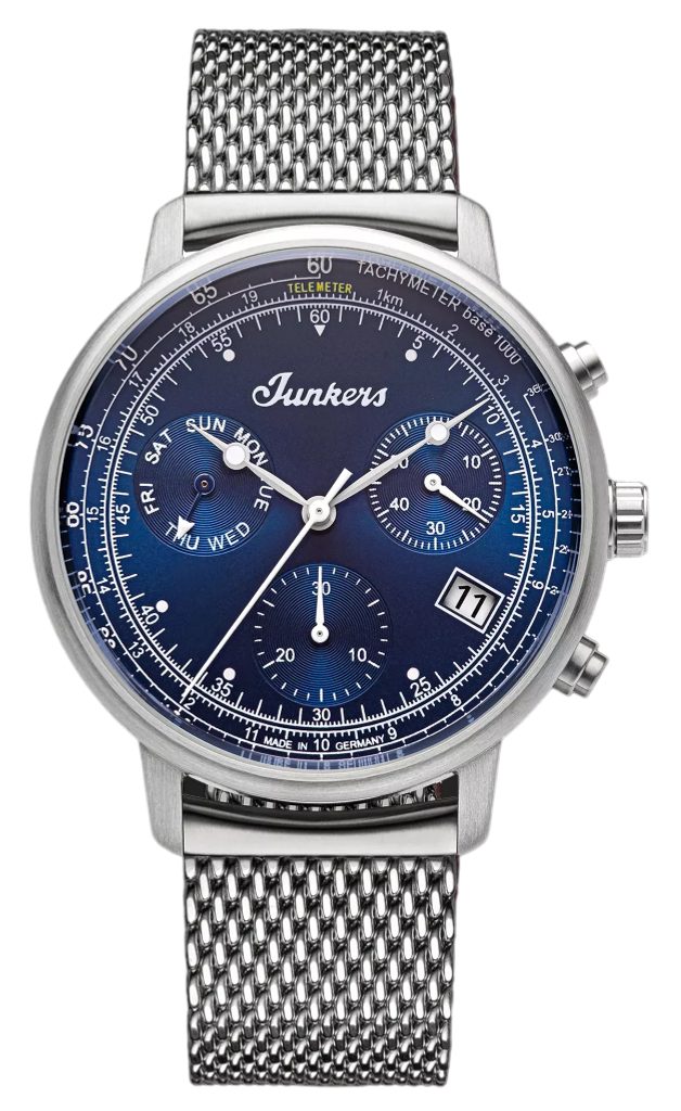 Nemecká značka Junkers je priamo spätá s fascinujúcou históriou letectva a značkou legendárnych lietadiel Junkers. A to nielen svojim názvom, ale predovšetkým prevzatím rodinných tradícií a filozofie pôvodnej leteckej značky. Najzaujímavejšie modely hodiniek Junkers vychádzajú z pôvodných vzorov ciferníkov určených pre pilotov a navigátorov – Baumuster A a Baumuster B. Ďalšie modelové rady, ktoré vám predstavíme, spája tematika legendárnych lietadiel a čistých línií bauhausovského designu. Nechýbajú samozrejme veľmi precízne prevedenie, kvalitné švajčiarske a japonské strojčeky a tiež dámske modely.