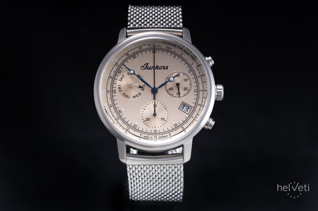 Nemecká značka Junkers je priamo spätá s fascinujúcou históriou letectva a značkou legendárnych lietadiel Junkers. A to nielen svojim názvom, ale predovšetkým prevzatím rodinných tradícií a filozofie pôvodnej leteckej značky. Najzaujímavejšie modely hodiniek Junkers vychádzajú z pôvodných vzorov ciferníkov určených pre pilotov a navigátorov – Baumuster A a Baumuster B. Ďalšie modelové rady, ktoré vám predstavíme, spája tematika legendárnych lietadiel a čistých línií bauhausovského designu. Nechýbajú samozrejme veľmi precízne prevedenie, kvalitné švajčiarske a japonské strojčeky a tiež dámske modely.