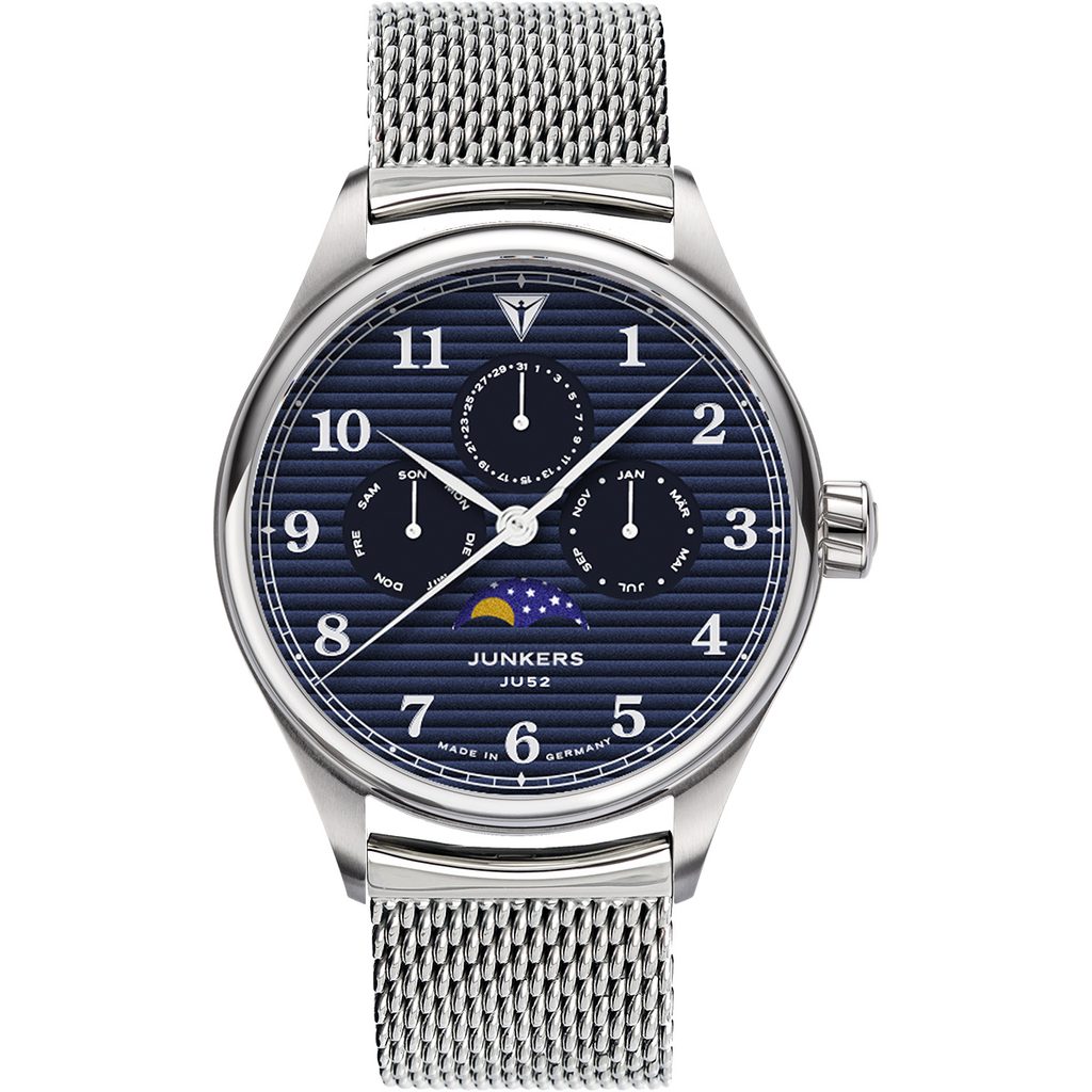 Nemecká značka Junkers je priamo spätá s fascinujúcou históriou letectva a značkou legendárnych lietadiel Junkers. A to nielen svojim názvom, ale predovšetkým prevzatím rodinných tradícií a filozofie pôvodnej leteckej značky. Najzaujímavejšie modely hodiniek Junkers vychádzajú z pôvodných vzorov ciferníkov určených pre pilotov a navigátorov – Baumuster A a Baumuster B. Ďalšie modelové rady, ktoré vám predstavíme, spája tematika legendárnych lietadiel a čistých línií bauhausovského designu. Nechýbajú samozrejme veľmi precízne prevedenie, kvalitné švajčiarske a japonské strojčeky a tiež dámske modely.