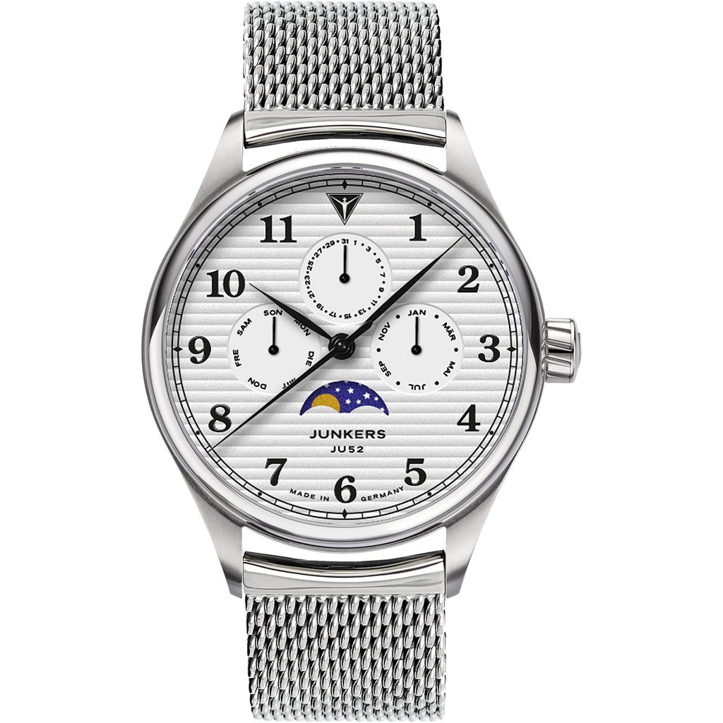 Nemecká značka Junkers je priamo spätá s fascinujúcou históriou letectva a značkou legendárnych lietadiel Junkers. A to nielen svojim názvom, ale predovšetkým prevzatím rodinných tradícií a filozofie pôvodnej leteckej značky. Najzaujímavejšie modely hodiniek Junkers vychádzajú z pôvodných vzorov ciferníkov určených pre pilotov a navigátorov – Baumuster A a Baumuster B. Ďalšie modelové rady, ktoré vám predstavíme, spája tematika legendárnych lietadiel a čistých línií bauhausovského designu. Nechýbajú samozrejme veľmi precízne prevedenie, kvalitné švajčiarske a japonské strojčeky a tiež dámske modely.