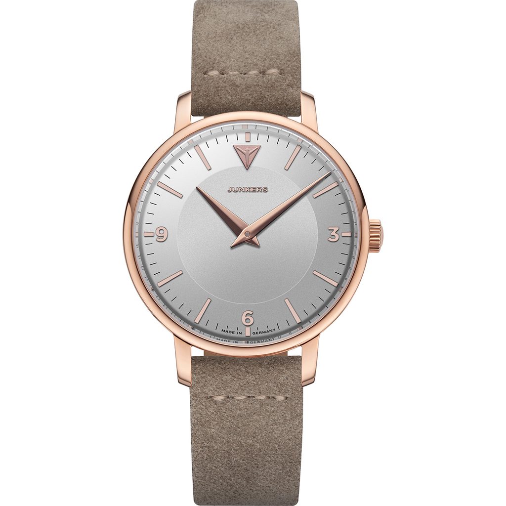 Hodinky Junkers 925.01.07 majú puzdro z nehrdzavejúcej ocele s povrchovou úpravou ružovým zlatom PVD, v ktorom sa nachádza japonský batériový strojček Miyota GL36. Na elegantnom ciferníku nájdeme minimalistické ručičky, ktoré neznižujú výbornú čitateľnosť hodiniek. Hodinky sa dodávajú s elegantným koženým náramkom v hnedom odtieni, ktorý ladí s dizajnom ciferníka.