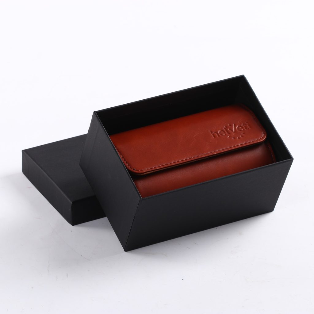 Cestovné puzdro je ručne vyrobené z kože (vonkajšia časť) a zamatovej podšívky (vnútorná časť), zatváranie je v podobe gombíkov. Vo vnútri puzdra sa nachádzajú 2 vyberateľné vankúšiky, na ktoré hodinky položíte a zacvaknete. Medzi vankúšmi sú vyvýšené priečky, ktoré zabraňujú vzájomnému dotyku hodiniek a chránia ich pred prípadným odretím. Táto škatuľka je určená na uloženie 2 hodiniek, ale rovnako dobre do nej môžete umiestniť aj náramky, slúchadlá alebo čokoľvek iné.