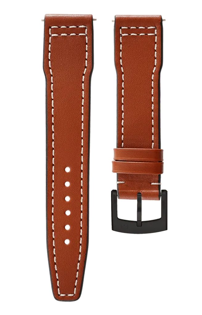 Hnedý kožený remienok Biatec Marine v námorníckom štýle s jemne zrnitou štruktúrou a bielym prešívaním má vysokú odolnosť proti vode a poškriabaniu. Môže sa tiež pochváliť dobrou pružnosťou, ktorá zaručuje vysoký komfort pri nosení.